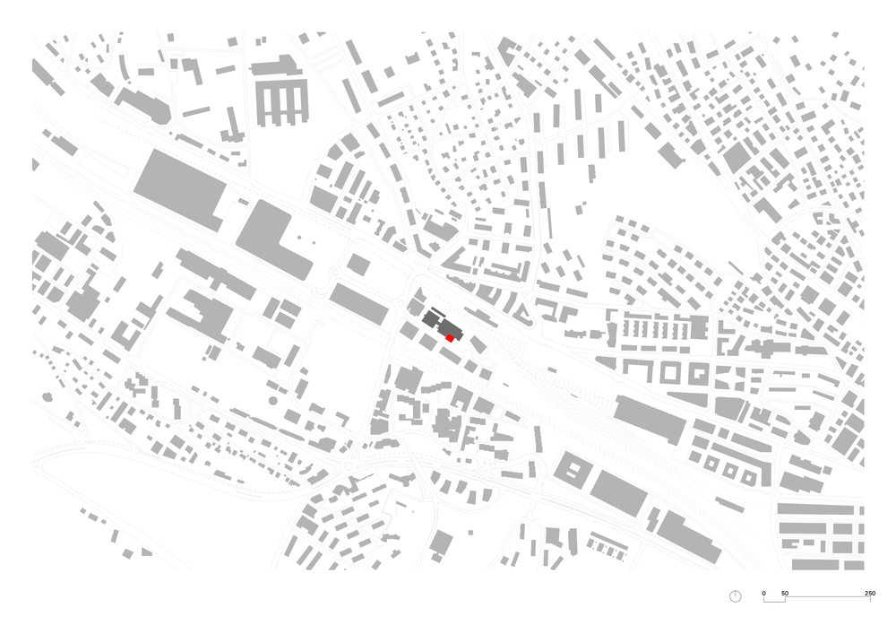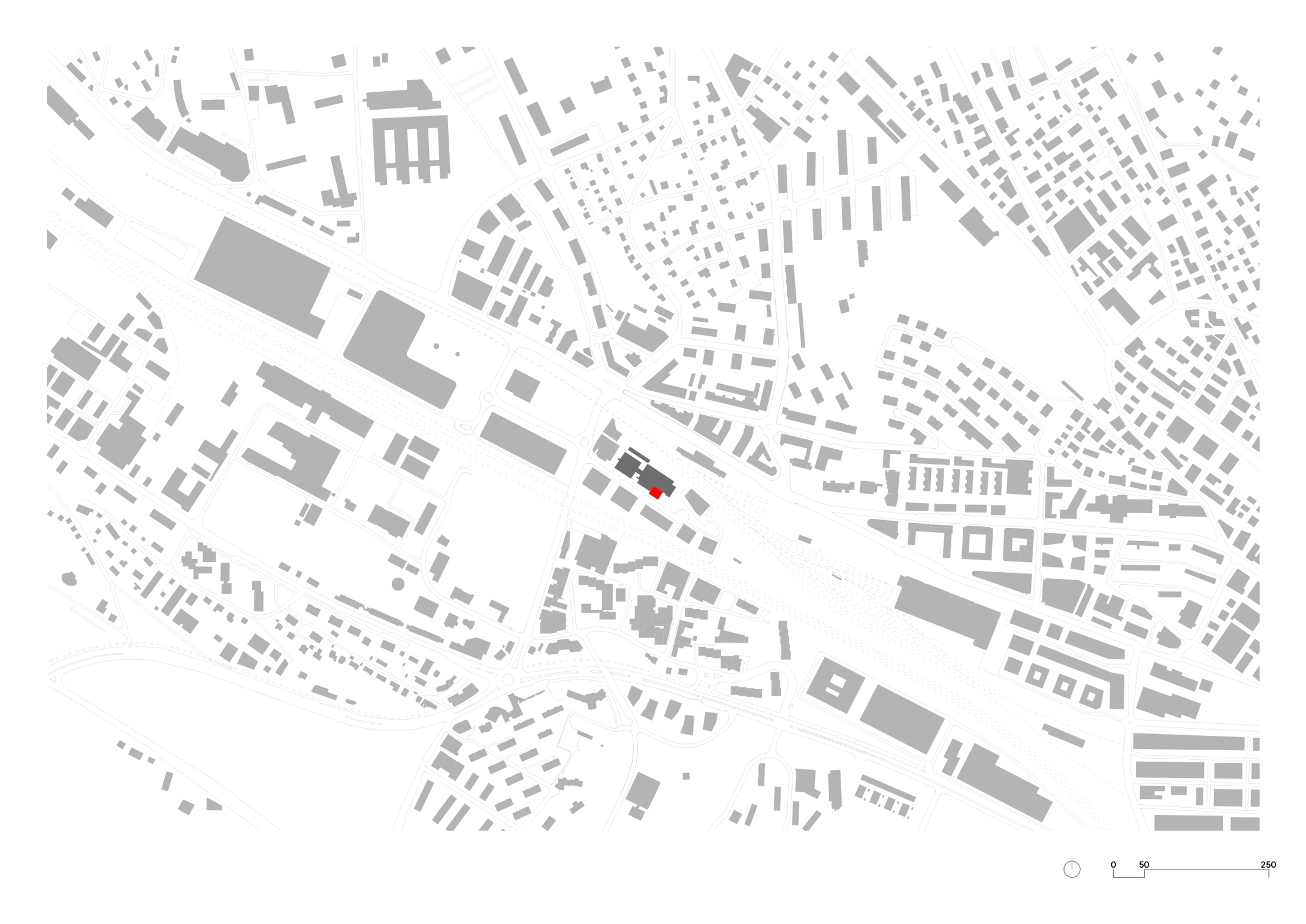 Le site, vestige du passé industriel et témoin des premières reconversions du patrimoine en lieu culturel, est également modelé par une topographie singulière liée au talus du viaduc du Galicien qui forme une coupure importante par rapport au nord. L’accolement de volume successif participe au caractère du lieu. L’implantation de ce nouveau volume cherche à renforcer cette identité.