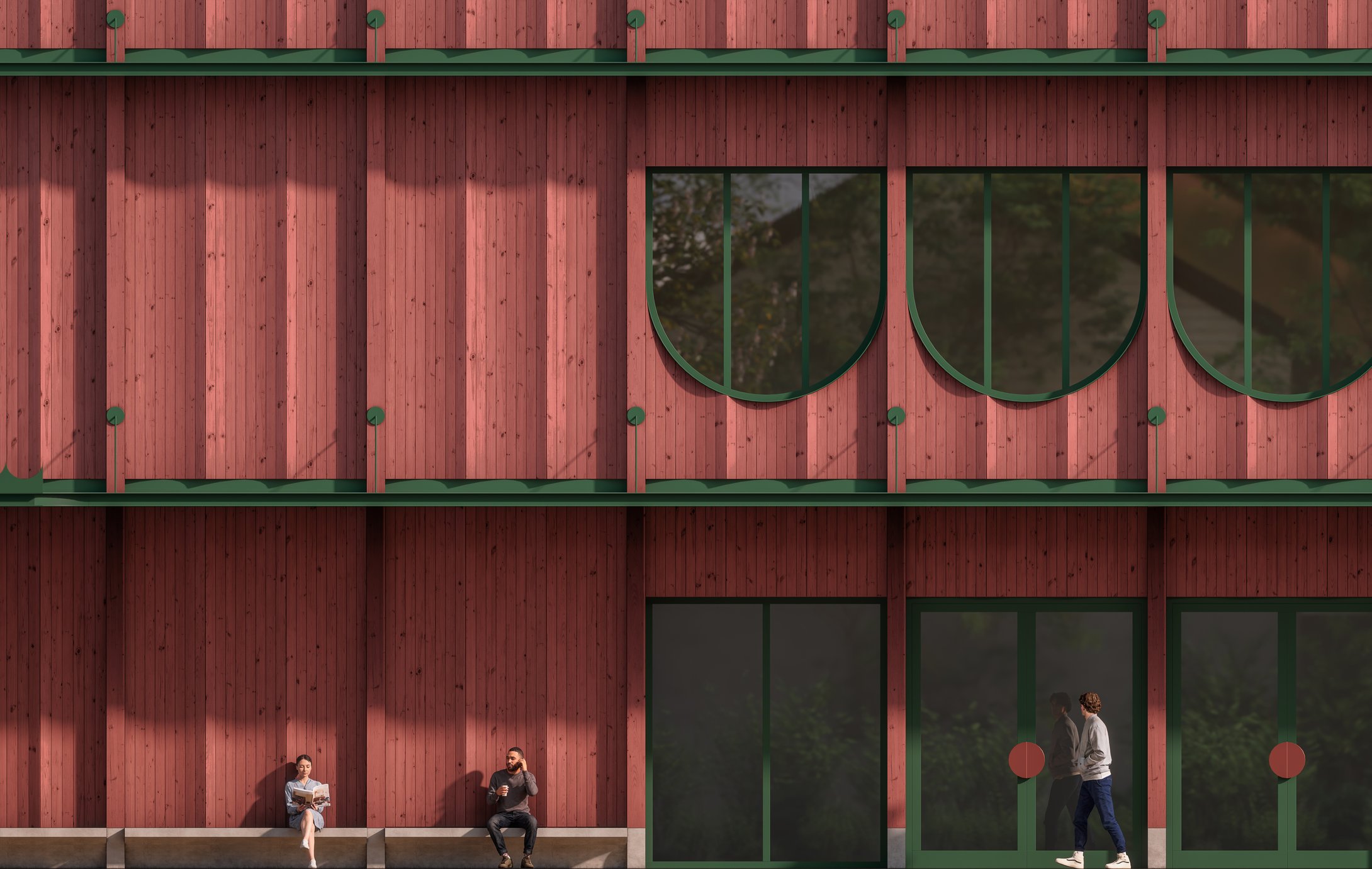 La couleur et la matérialité de la façade évoque également les armoiries d’Onex.
