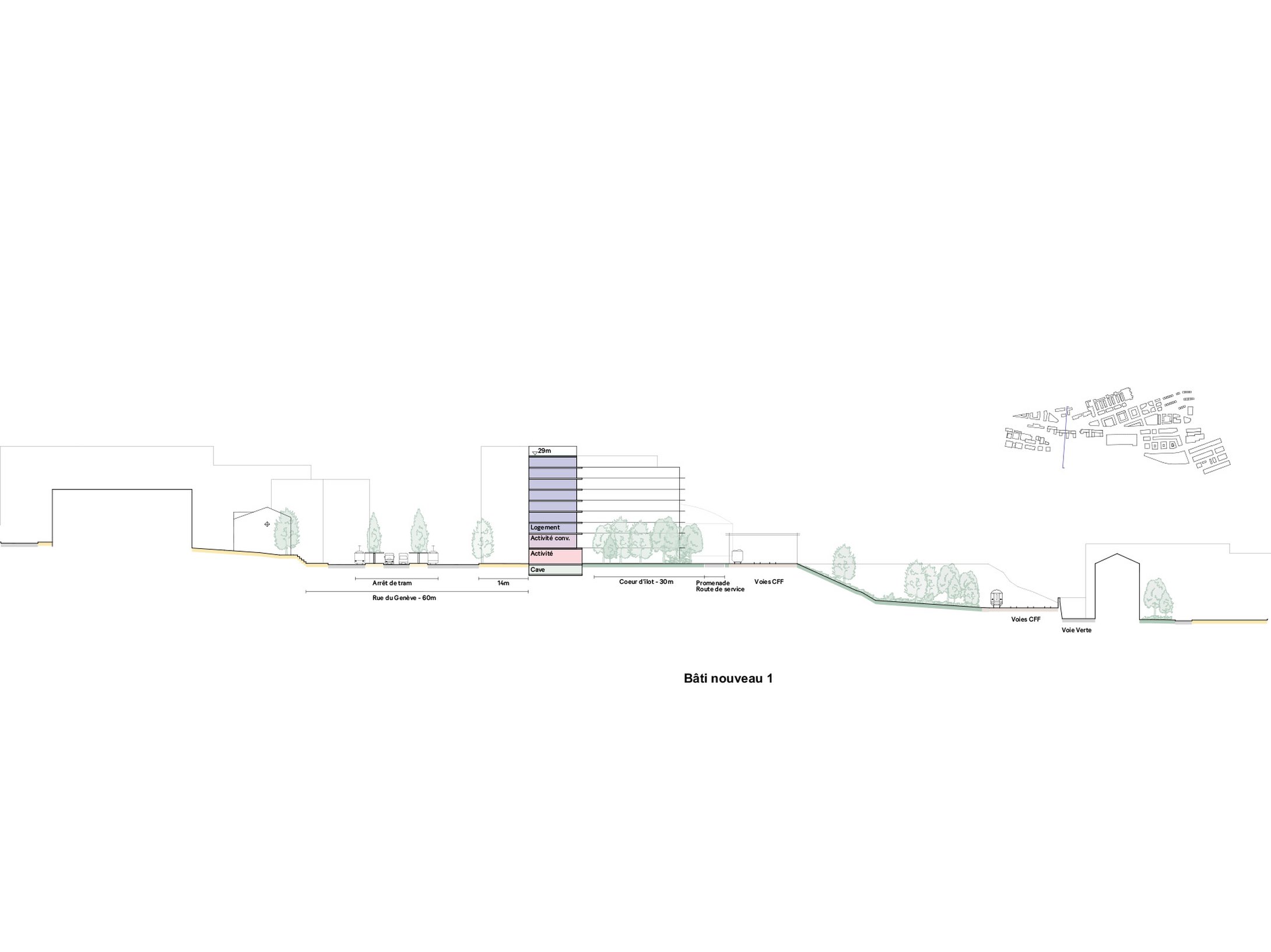 • Implanter les bâtiments au nord définissant le front de la rue de Genève